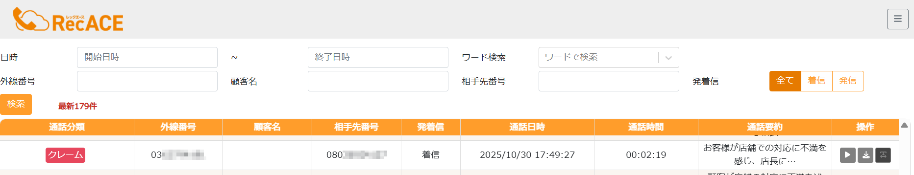 一覧画面からそのまま内容を確認できるようになり、録音の確認作業がしやすくなります。