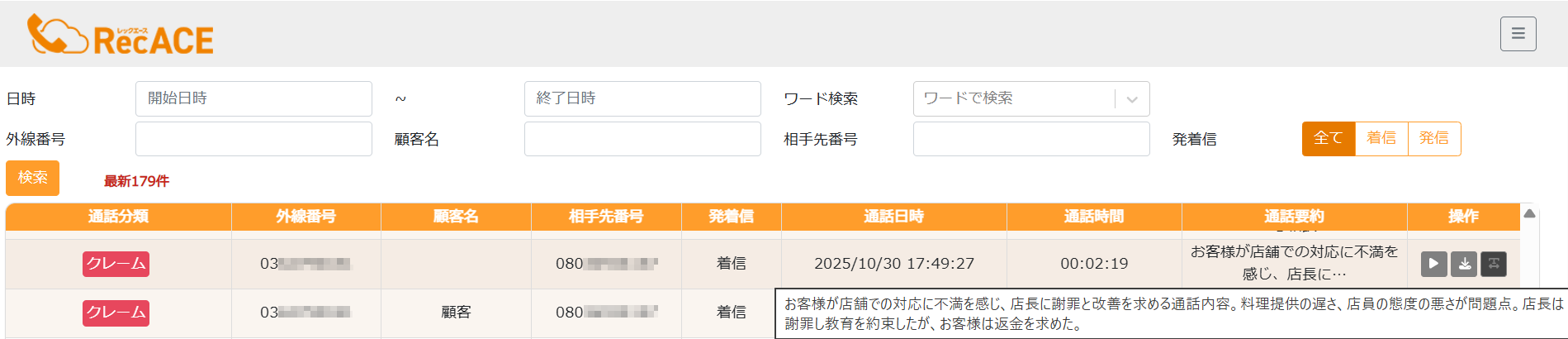 録音一覧画面の通話要約がホバーで全文表示されるようになりました